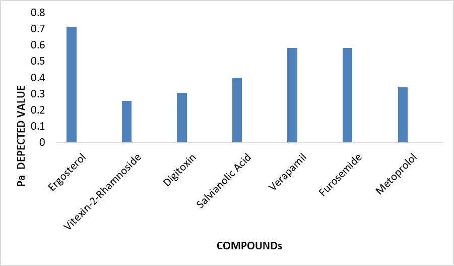 The marketed drug was analysed with resected to the natural phytoconstituents which were reported in the literature for anti-HCM activity by PASS prediction. Further, the analysis was done under five area of the Pharmacotherapeutic Avenue, which at the end gave the results in terms of Pa value reported in table 1 and graphically represented in figure 4.