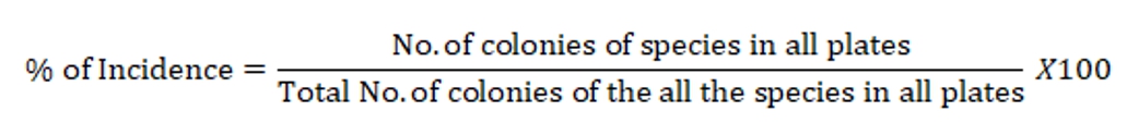 The cyanobacterial samples were collected from the freshwater lakes and canals of Warangal and Adilabad districts. The samples were collected from pegadapalli lake, stagnant water pool from Reddypalem village, Reddypalem yellamma lake, Badrakali lake, Waddepalli freshwater lake, Adilabad mavala lake at mid winter season in month of August to December by Capillary method. Cyanobacterial strains were isolated and identified by standard microbiological methods (Desikachary. 1959; Rippka et al., 1979). Water samples were inoculated on Blue green agar media (Yadav et al., 2012; El-Aty et al., 2014). Media components in g/lit [NaNO₃ 1.500, K₂HPO₄ 0.0314 , MgSO₄ 0.036 , CaCl₂.2H₂O 0.0367, Na₂CO₃ 0.020, Na₂Mg EDTA 0.001 , citric acid 0.0056 , ferric ammonium citrate 0.006 , final pH after sterilization(at 25°C) 7.1] and Allen Arnon agar media [K₂HPO₄.3H₂O 28.0 g/500ml, MgSO₄ 20g/500ml, CaCl₂.2H₂O 6g/500ml, NaCl 20g/500ml, A&A Fe-EDTA solution 160ml, MnCl2.4H2O 360mg/l, MoO3 85% purity 36.0 mg/l or Na₂MO4.2H₂O 99% purity 61.1mg/l, ZnSO₄.7H₂O 44.0mg/l, CuSO4.5H2O 15.8mg/l, H3BO3 572mg/l, NH₄VO₃ 4.6mg/l, CoCl2.6H₂O 8.0mg/l] by pour plate method and simultaneously cultured in broth of same media. The plates and flasks were incubated for 20days under continuous emission of white cool fluorescent light maintained for 16х 8 L/D cycles with 30μ mol photon m-2s-1 referred as 30°C. The obtained cyanobacterial colonies were sub cultured several times to obtain pure cultures. Identification was done using morphological variation studies and toxonomical approaches according to Desikachary (1959). The percentage of incidence and frequency were calculated by employing the following formula: