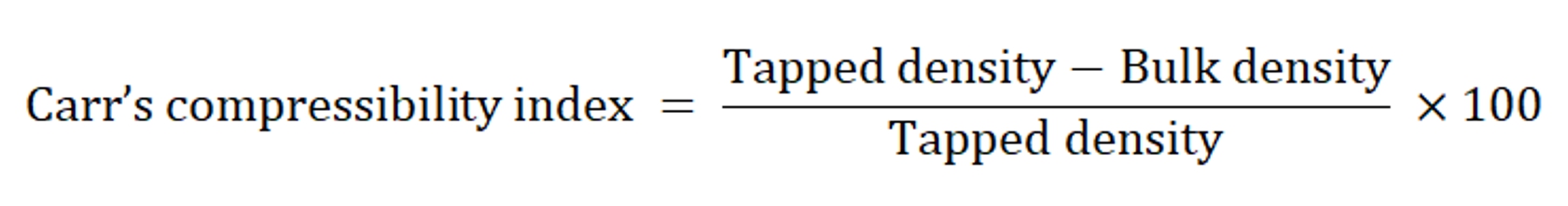 All the prepared formulations of floating microspheres were evaluated for bulk density, tapped density, Carr’s index and Hausner’s ratio (Patel et al., 2009; USP-2008).