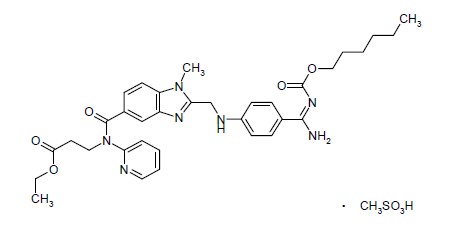 Ulrich B, Norbert H. 2003. Dosage form for oral administration of 3-[(2-{[4-(hexyloxycarbonylamino-imino-methyl)-phenylamino]-methyl}-1-methyl-1h-benzimidazol-5-carbonyl)-pyridin-2-yl-amino] propionic acid ethyl ester or its salts. European Patent EP1485094B1.1-15.