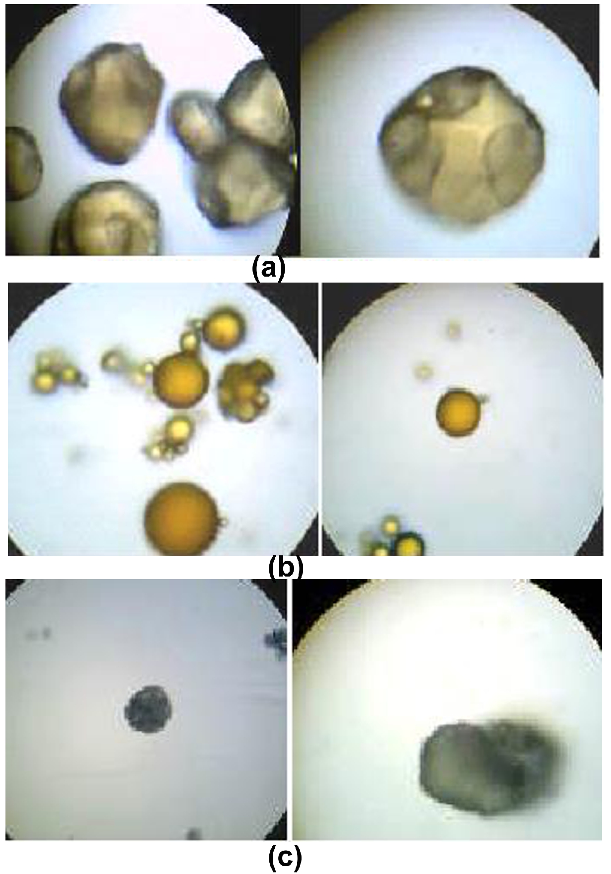 Figure 1. (a) Albumin microspheres (b) Chitosan microspheres and (c) Sodium Alginate microspheres