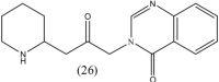 Initially analogues 20-22 were synthesized in which the length of the deoxygenated linker was varied, which resulted in a total loss of antimalarial activity. Analogues 23-25 were then synthesized which modified the piperidine ring of febrifugine. No antimalarial activity was reported for these analogues, suggesting that any modifications to piperidine moiety would result in a total loss of activity. Kikuchi et al. concluded that the piperidine moiety and linker of febrifugine were essential to maintain potent antimalarial activity. This important study revealed that good antimalarial candidates, based on 1, could only be accessed through modifications carried out on the 4-quinazolinone ring.