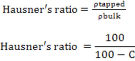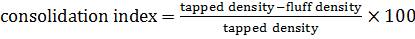 One gram sample was placed in 25mL graduated plastic centrifuge tubes and the volume occupied was noted. 10mL of distilled water was added and the content was allowed to swell for 1h with the vigorous shaking at the time interval of 10min. Mixture was allowed to stand for 10min followed by centrifugation at 1000rpm for 10min on a bench centrifuge. The supernatant was carefully decanted and volume of sediment was measured. The swelling index was computed using following equation (Bapat S 2004).