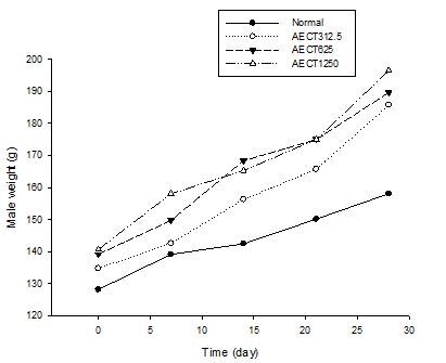 Figure 2. Effect of the AECT on the body weight of male during the treatment