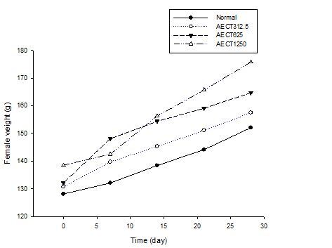 Figure 3. Effect of the AECT on the body weight of female during the treatment